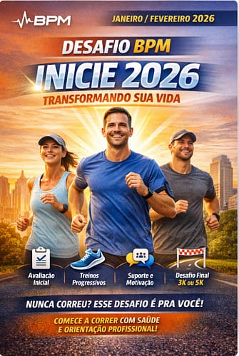 O DESAFIO BPM é um programa exclusivo para quem deseja começar a correr do zero, com acompanhamento profissional, evolução orientada e foco total em qualidade de vida, saúde e bem-estar.